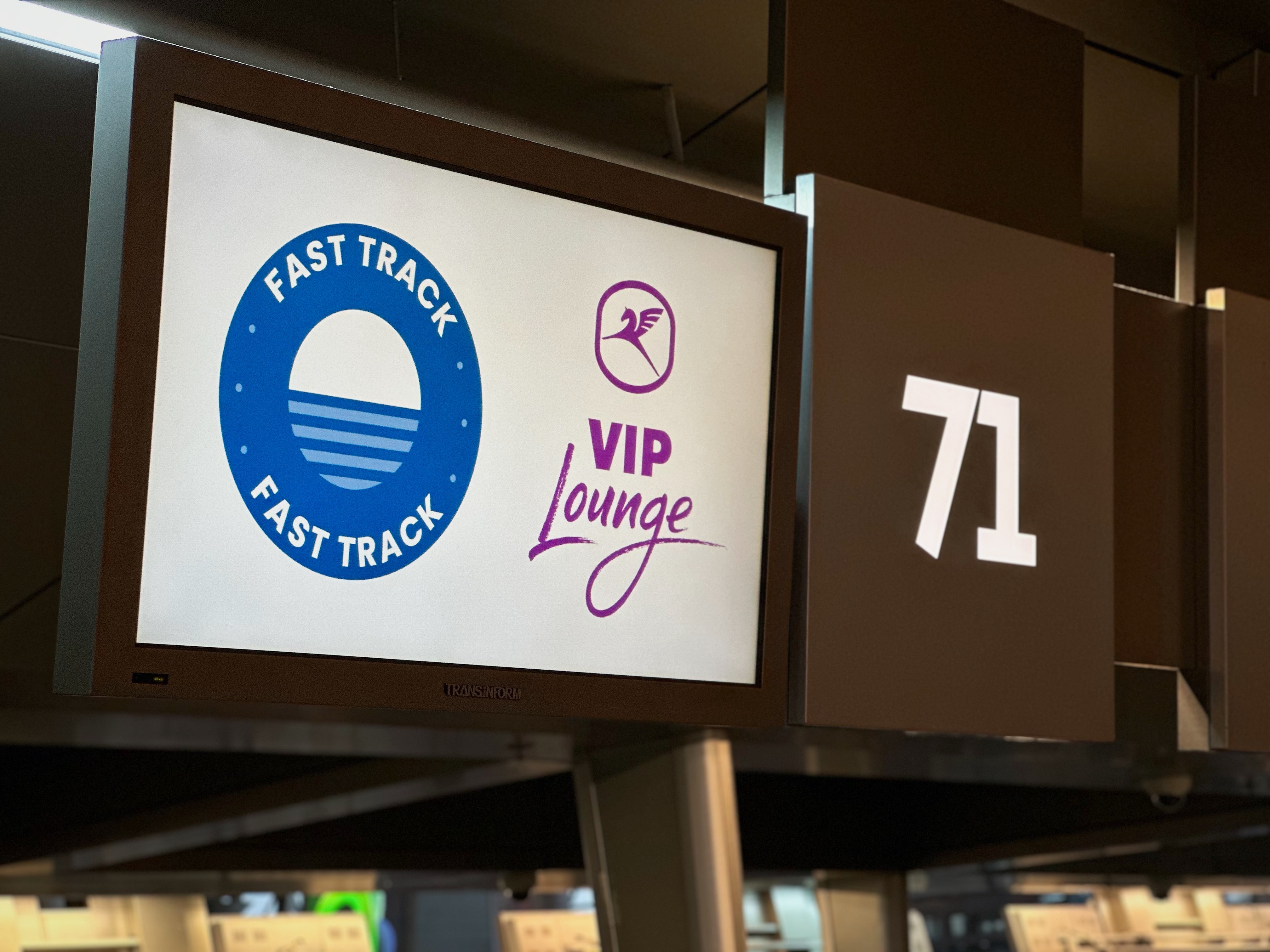 Чтобы воспользоваться сервисом, необходимо обратиться для регистрации и сдачи багажа на стойку номер 71. Если Вы зарегистрированы онлайн, также необходимо подойти на стойку 71, чтобы распечатать посадочный талон для последующего ускоренного прохождения досмотра. При международных вылетах прохождение таможенного и пограничного (паспортного) контроля проходит на общих основаниях.